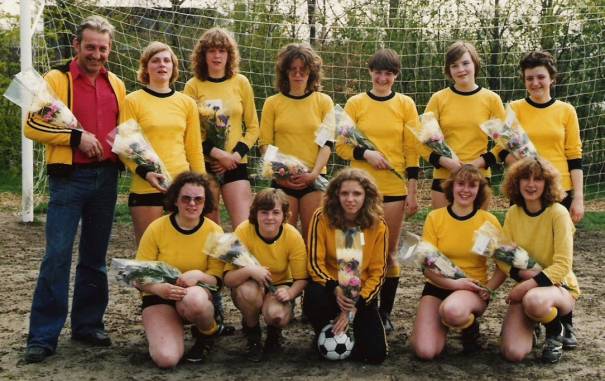 Gehurkt v.l.n.r : Alma Worm, Nancy Schelling, Ina v.d. Veldt, Wilma v.d. Laan en Margriet Boon.